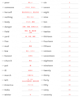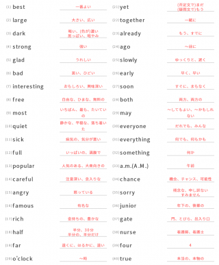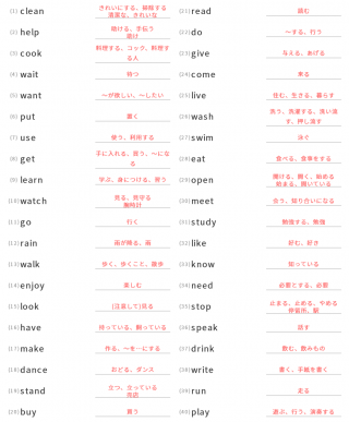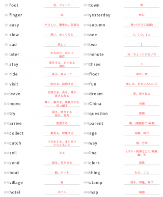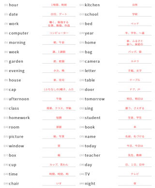 中学1年生英単語中学1年生向け英単語が40問出題されます。