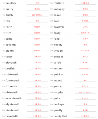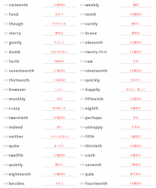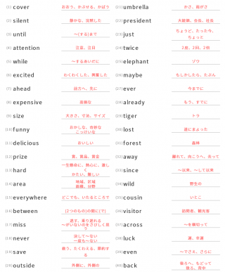 中学3年生英単語中学3年生向け英単語が40問出題されます。