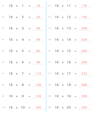 小学2年生小学3年生小学4年生小学5年生小学6年生算数九九掛け算一段ごとインド式16の段の掛け算が順序通りに出題されます。