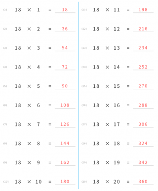 小学2年生小学3年生小学4年生小学5年生小学6年生算数九九掛け算一段ごとインド式18の段の掛け算が順序通りに出題されます。