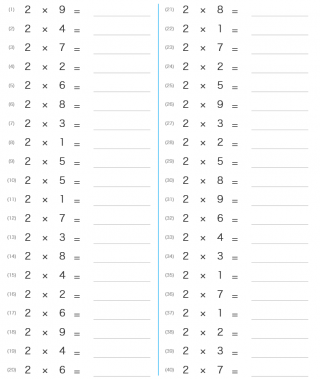 小学2年生算数九九掛け算一段ごと2の段の九九がばらばらで出題されます。