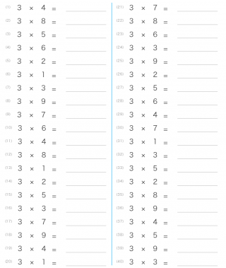 小学2年生算数九九掛け算一段ごと3の段の九九がばらばらで出題されます。