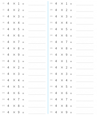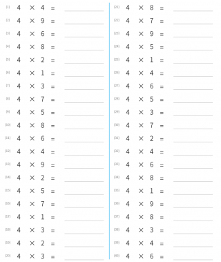 小学2年生算数九九掛け算一段ごと4の段の九九が、ばらばらで出題されます。