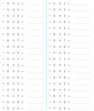 小学2年生算数九九掛け算一段ごと6の段の九九が順序通りに出題されます。