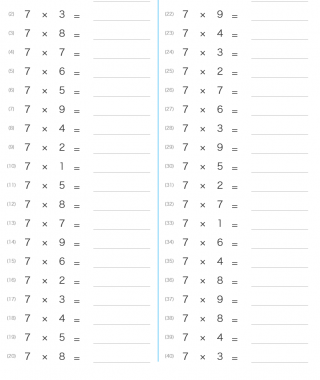 小学2年生算数九九掛け算一段ごと7の段の九九がばらばらで出題されます。