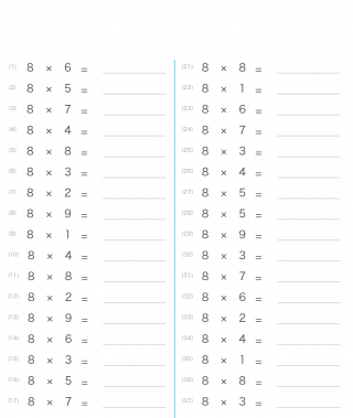 小学2年生算数九九掛け算一段ごと8の段の九九がばらばらで出題されます。