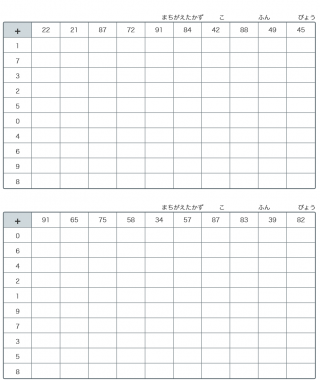 小学2年生小学3年生小学4年生算数ます足し算繰り上がり2桁足す2桁の足し算がばらばらで100ます出題されます。