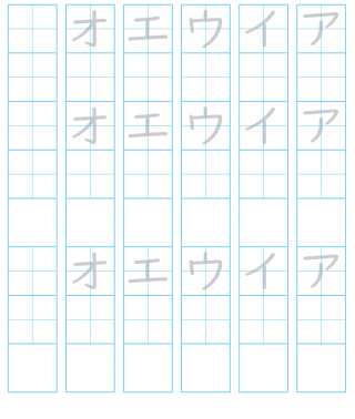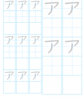 小学1年生五十音 カタカナ書き取りカタカナ【ア行】の なぞり書き練習です。