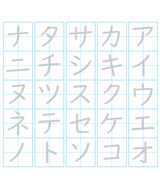 小学1年生五十音 カタカナ書き取りカタカナ50音のなぞり書き練習です。カタカナの配置を覚えるのと、直線や曲線のなぞり書きが練習できます。