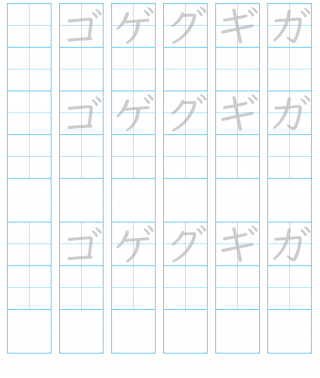 小学1年生五十音 カタカナ書き取りカタカナ【ガ行】の なぞり書き練習です。