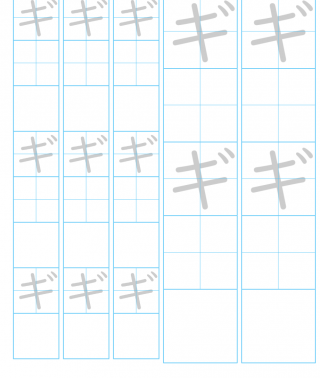 小学1年生五十音 カタカナ書き取りカタカナ【ギ】の なぞり書き練習です。