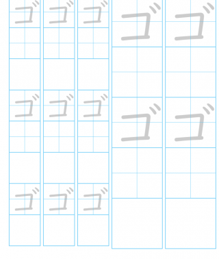 小学1年生五十音 カタカナ書き取りカタカナ【ゴ】の なぞり書き練習です。