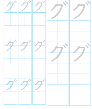 小学1年生五十音 カタカナ書き取りカタカナ【グ】の なぞり書き練習です。