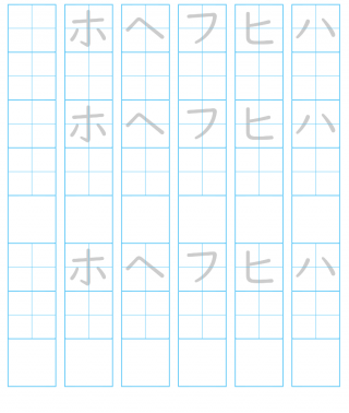 小学1年生五十音 カタカナ書き取りカタカナ【ハ行】の なぞり書き練習です。