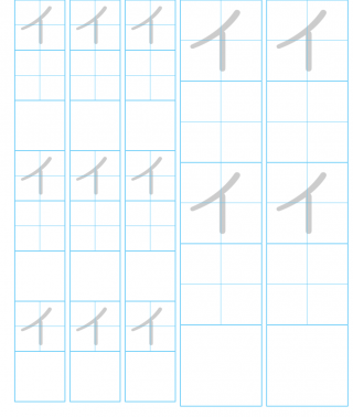 小学1年生五十音 カタカナ書き取りカタカナ【イ】の なぞり書き練習です。