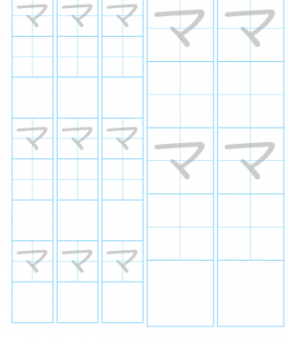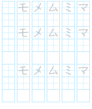 小学1年生五十音 カタカナ書き取りカタカナ【マ行】の なぞり書き練習です。