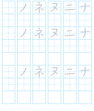 小学1年生五十音 カタカナ書き取りカタカナ【ナ行】の なぞり書き練習です。