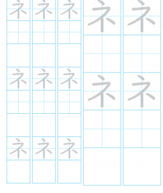 小学1年生五十音 カタカナ書き取りカタカナ【ネ】の なぞり書き練習です。