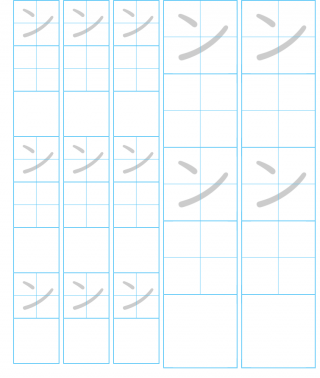小学1年生五十音 カタカナ書き取りカタカナ【ン】の なぞり書き練習です。
