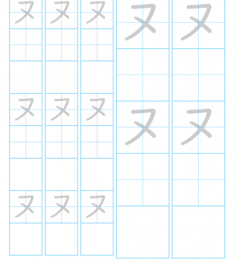 小学1年生五十音 カタカナ書き取りカタカナ【ヌ】の なぞり書き練習です。
