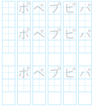 小学1年生五十音 カタカナ書き取りカタカナ【パ行】の なぞり書き練習です。