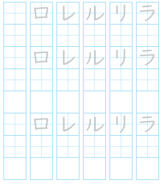 小学1年生五十音 カタカナ書き取りカタカナ【ラ行】の なぞり書き練習です。