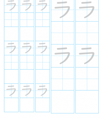 小学1年生五十音 カタカナ書き取りカタカナ【ラ】の なぞり書き練習です。