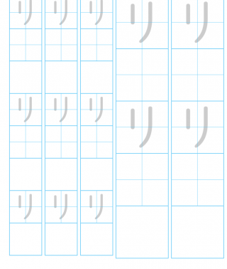 小学1年生五十音 カタカナ書き取りカタカナ【リ】の なぞり書き練習です。