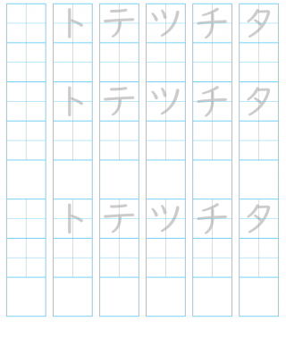小学1年生五十音 カタカナ書き取りカタカナ【タ行】の なぞり書き練習です。