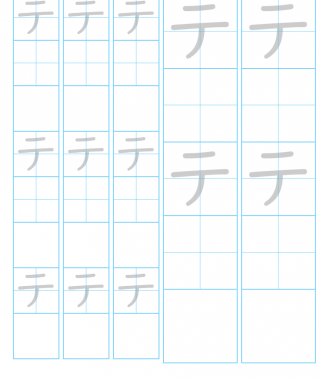 小学1年生五十音 カタカナ書き取りカタカナ【テ】の なぞり書き練習です。