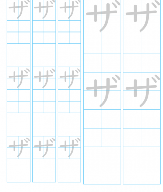 小学1年生五十音 カタカナ書き取りカタカナ【ザ行】の なぞり書き練習です。