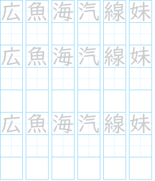 出題範囲:うみへのながいたび漢字書き取り練習 小学1年