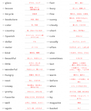 英単語英検英検4級英検4級対策の英単語が40問出題されます。
