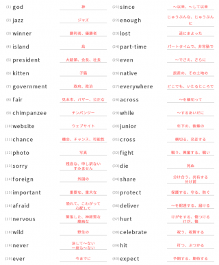 英単語英検英検3級英検3級対策の英単語が40問出題されます。