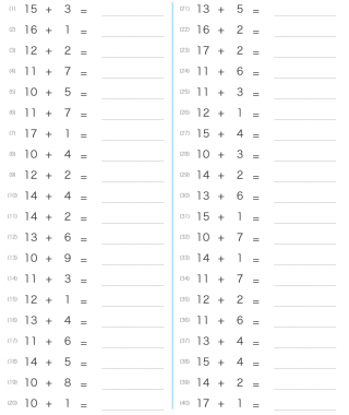 小学1年生算数足し算2桁の数字に1桁の数字を足し、合計19までの計算が出題されます。